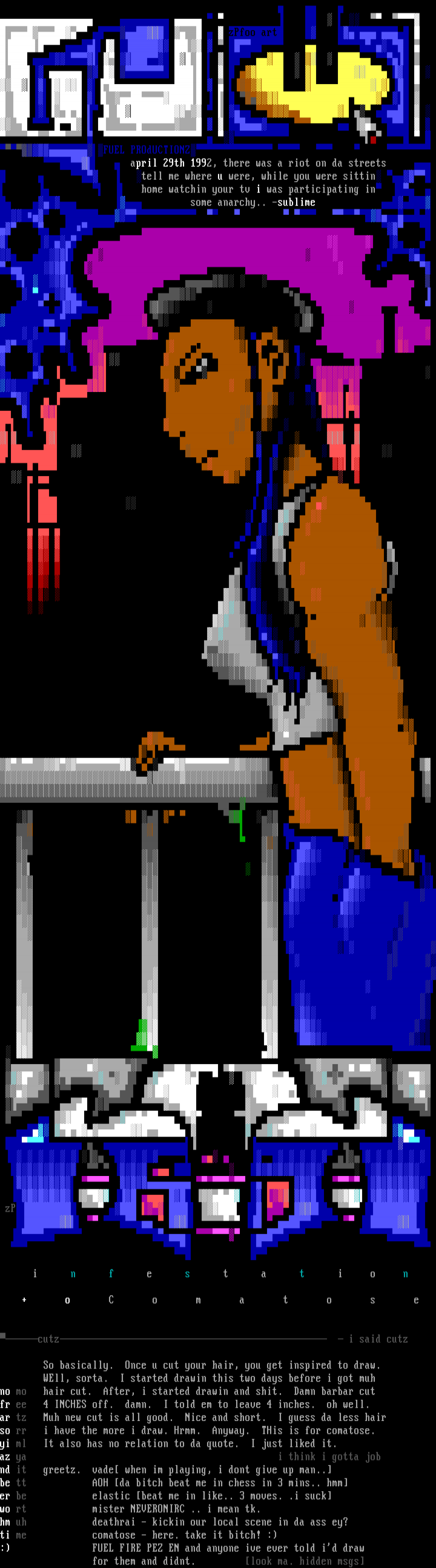 april 29th 1992, there was a riot on da streets tell me where u were, while you were sittin home watchin your tv i was participating in some anarchy.. -sublime