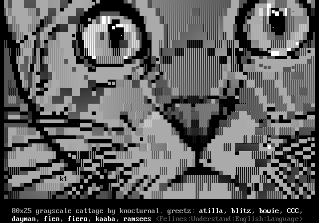 80x25 grayscale cattage by knocturnal. greetz: atilla, blitz, bowie, CCC,