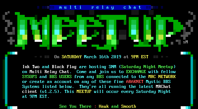 or create an account on any of these fine ARAKNET Mystic BBS