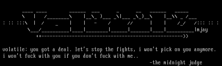 volatile: you got a deal. lets stop the fights, i wont pick on you anymore.