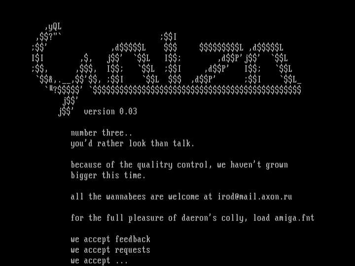 for the full pleasure of daerons colly, load amiga.fnt