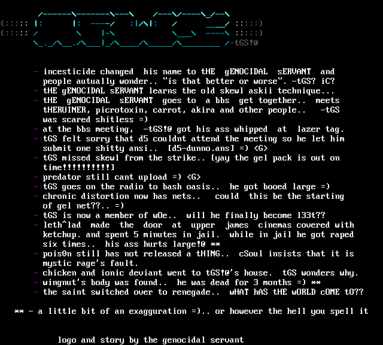 - tHE gENOCIDAL sERVANT learns the old skewl askii technique...