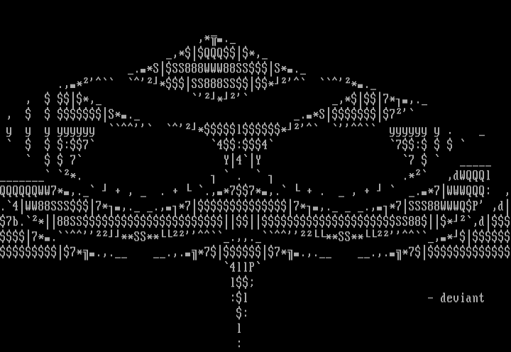 QQQQQQWW7*,. + , . + .,*77*,. + . , + .*7WWWQQQ: ,.4WW88SSS7*,. .,*77*,. .,*7SSS88WWWQP ,d7b.*88SSSS88*,d7*.**SS**.,,.**SS**,*7*.,. .,.*77*.,. .,.*7 4llP