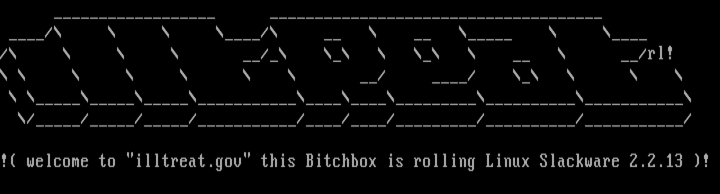 / / / / /rl! / / ! welcome to illtreat.gov this Bitchbox is rolling Linux Slackware 2.2.13 !