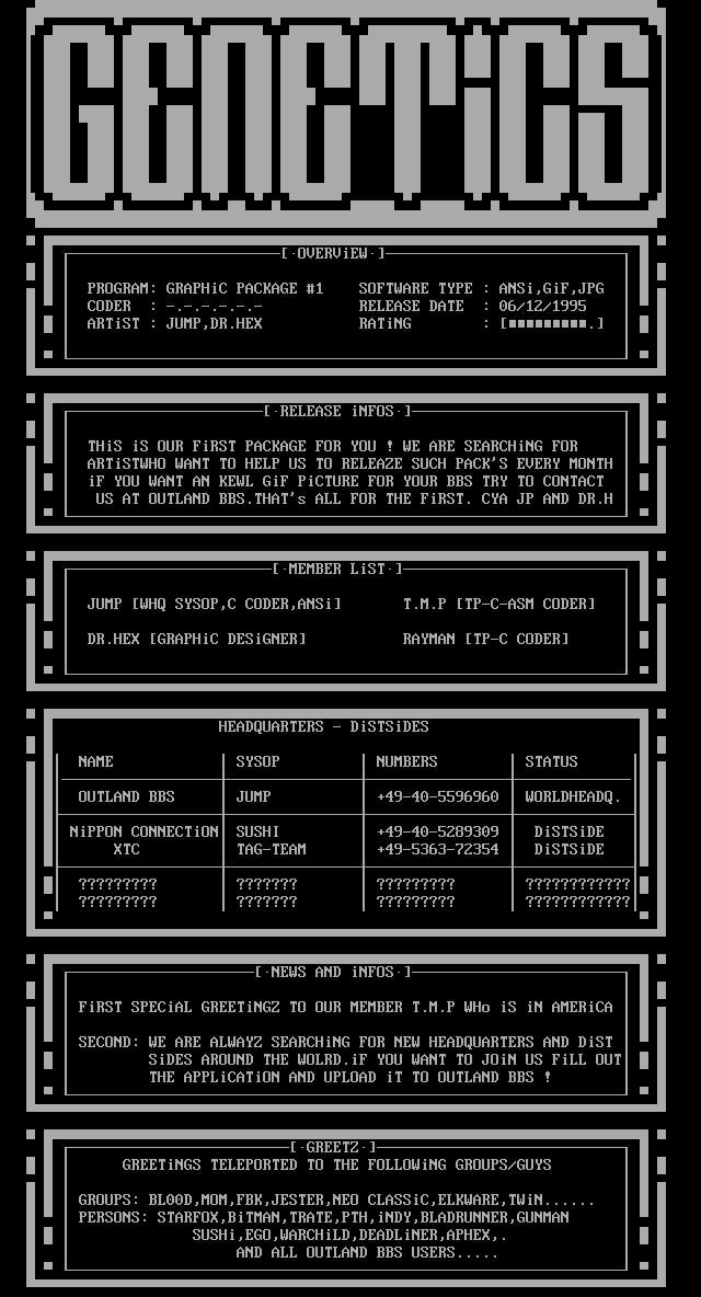 PROGRAM: GRAPHiC PACKAGE 1 SOFTWARE TYPE : ANSi,GiF,JPG