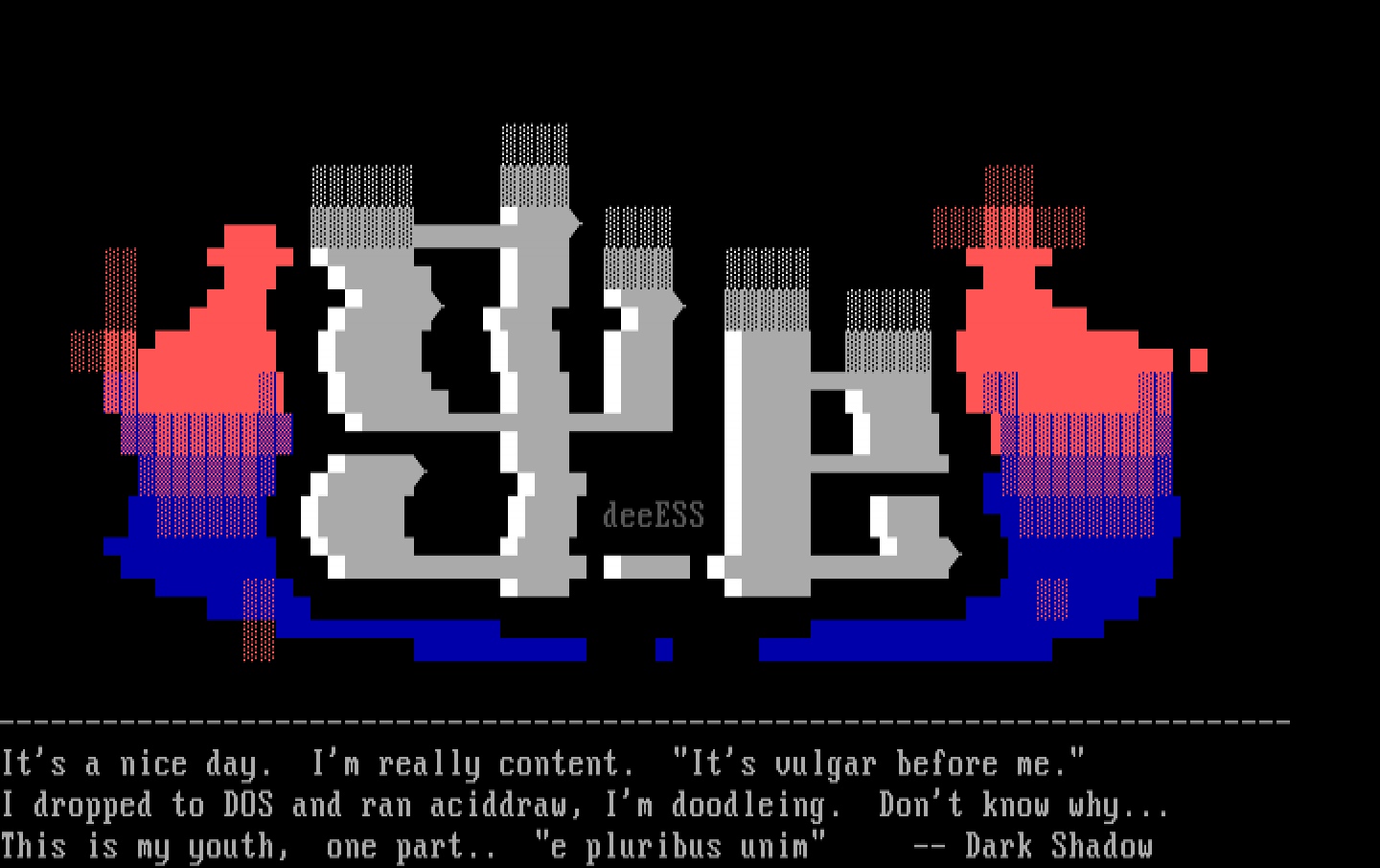 I dropped to DOS and ran aciddraw, Im doodleing. Dont know why...