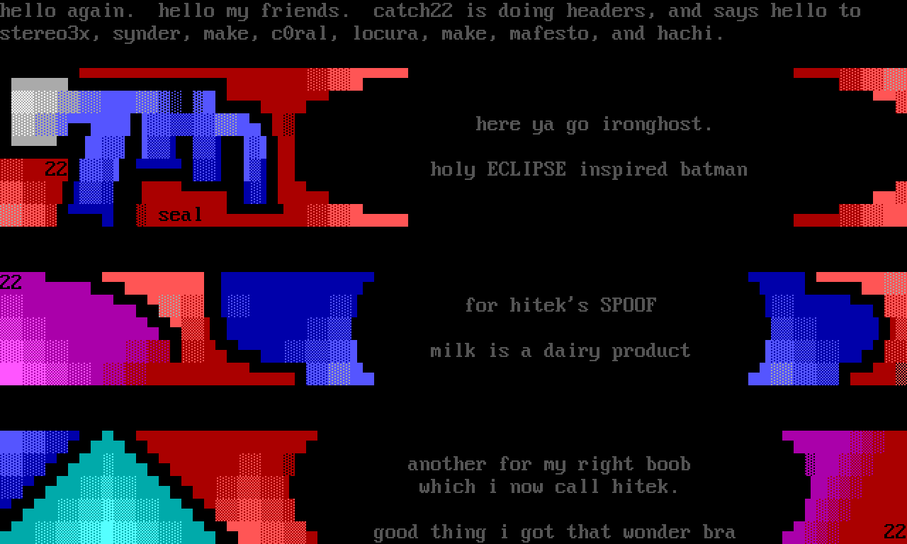 hello again. hello my friends. catch22 is doing headers, and says hello to
