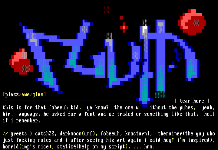 // greets catch22, darkmoonunf, fobeeuh, knocturnl, theruinerthe guy who