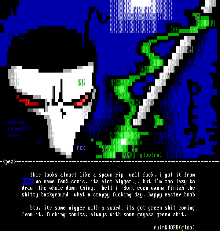 btw, its some nigger with a sword. its got green shit coming