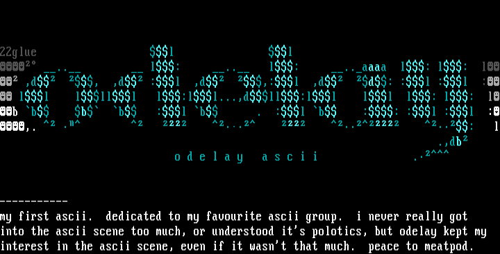 interest in the ascii scene, even if it wasnt that much. peace to meatpod.