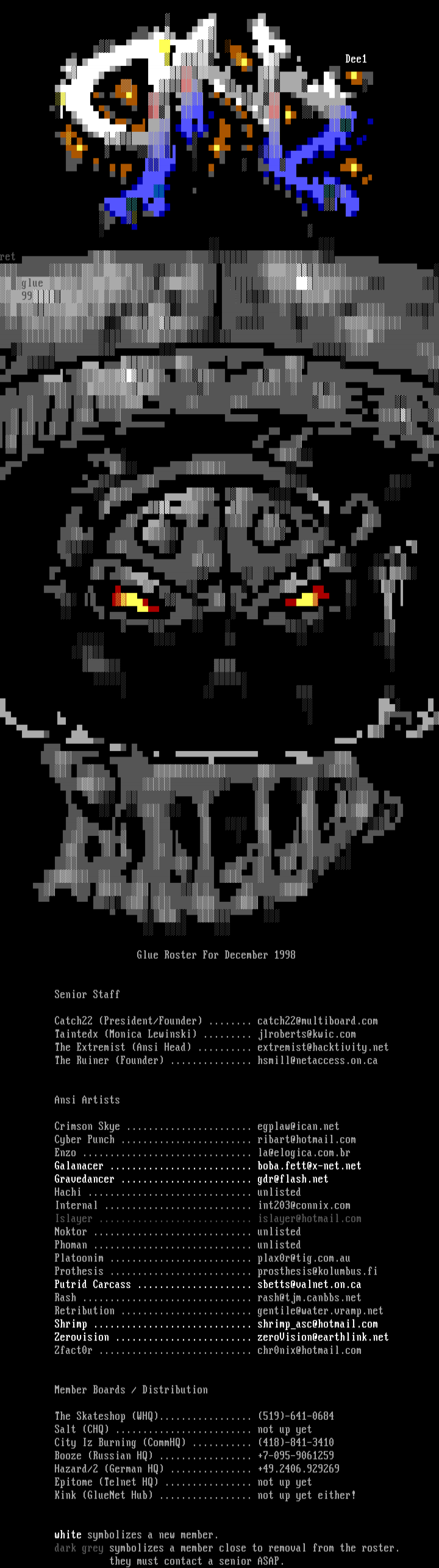 Glue Roster For December 1998