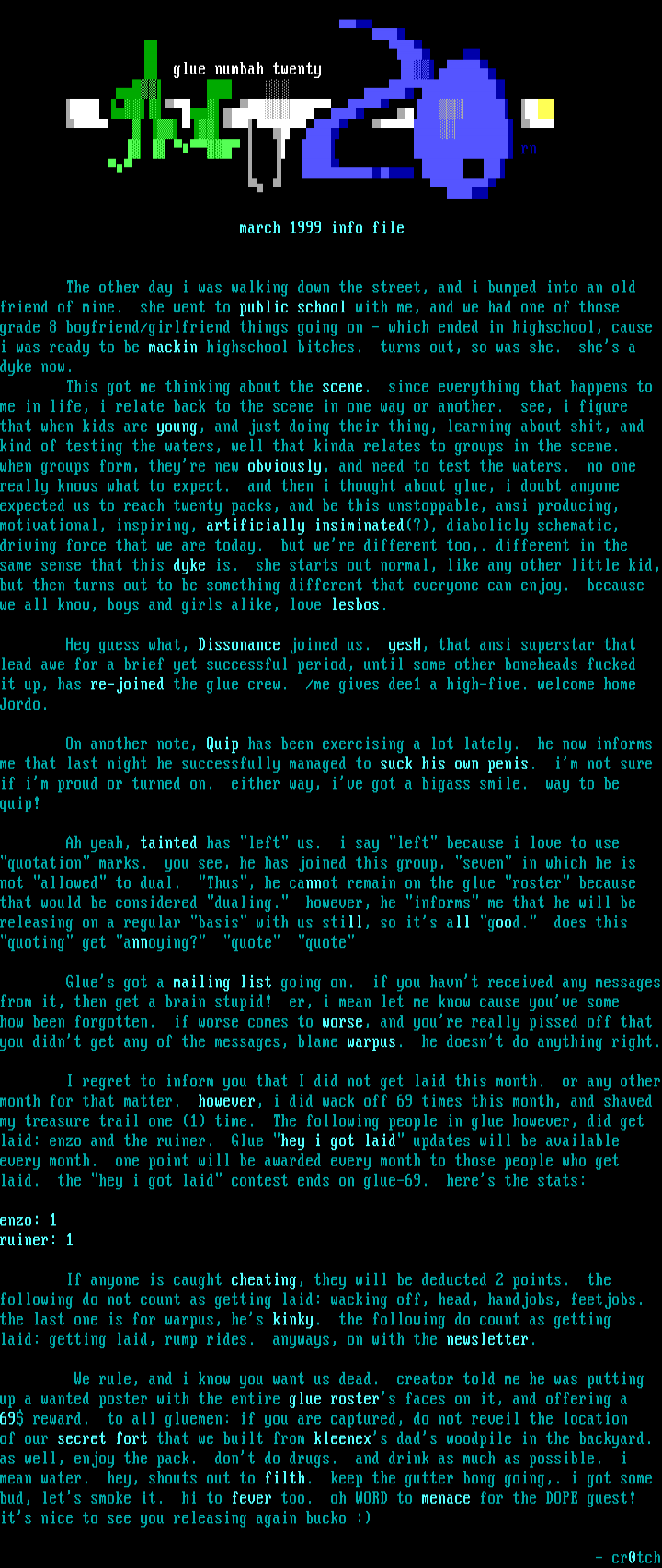 Glues got a mailing list going on. if you havnt received any messagesfrom it, then get a brain stupid! er, i mean let me know cause youve some