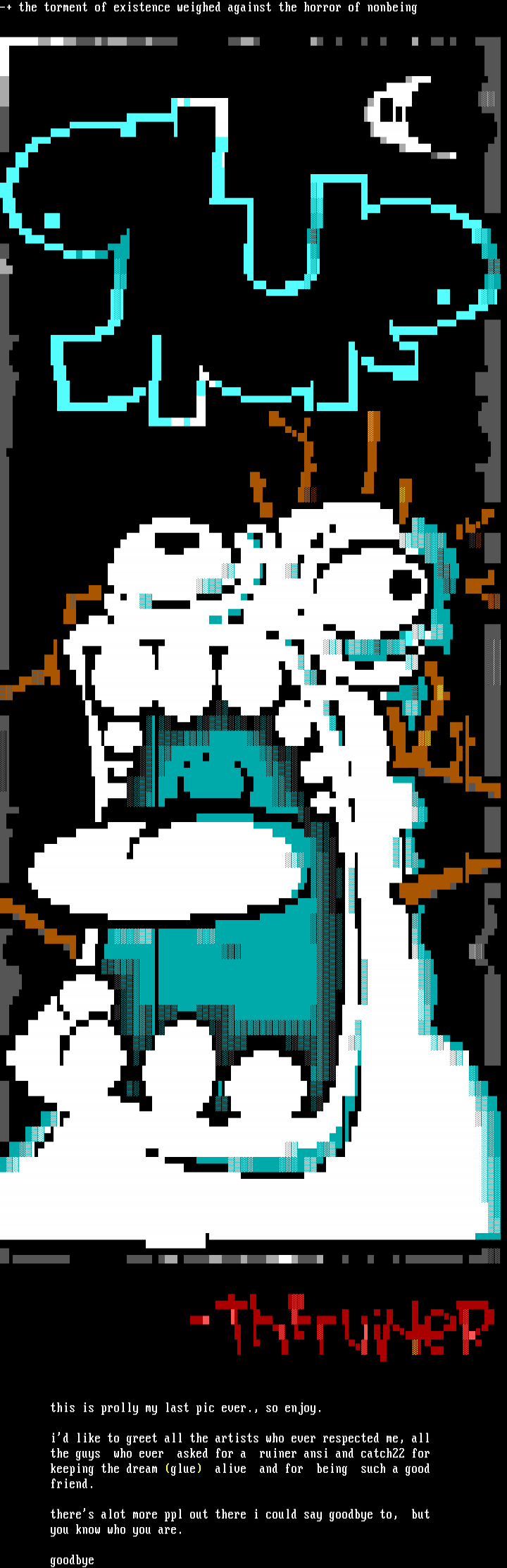 -+ the torment of existence weighed against the horror of nonbeing