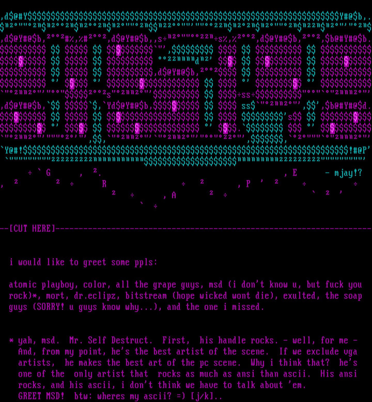 one of the only artist that rocks as much as ansi than ascii. His ansi