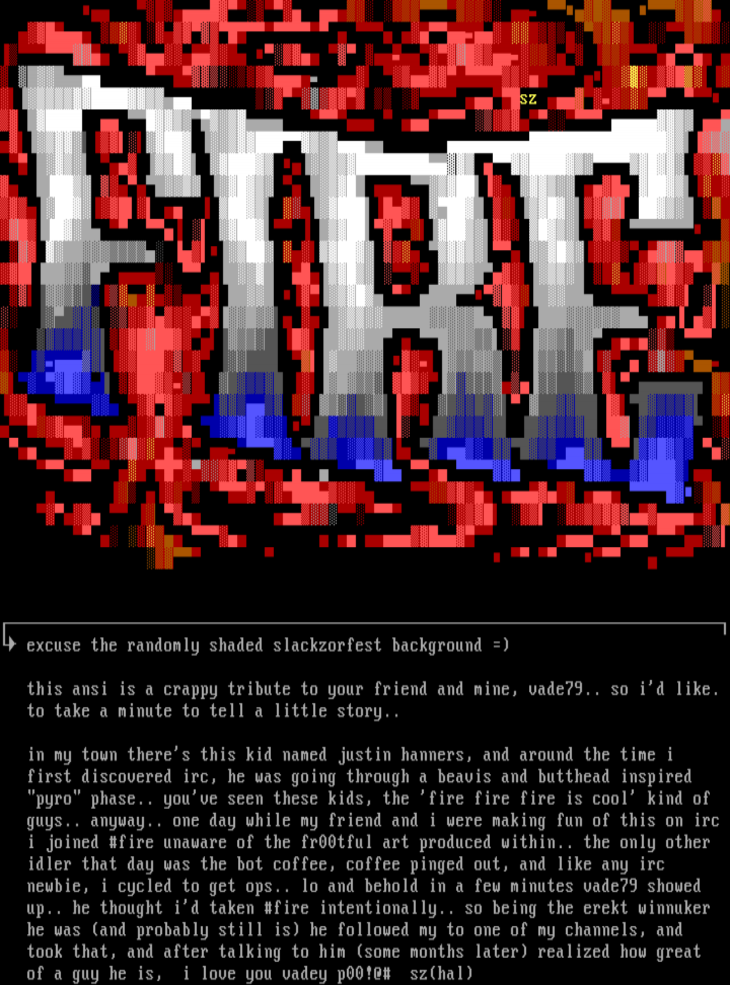 this ansi is a crappy tribute to your friend and mine, vade79.. so id like.