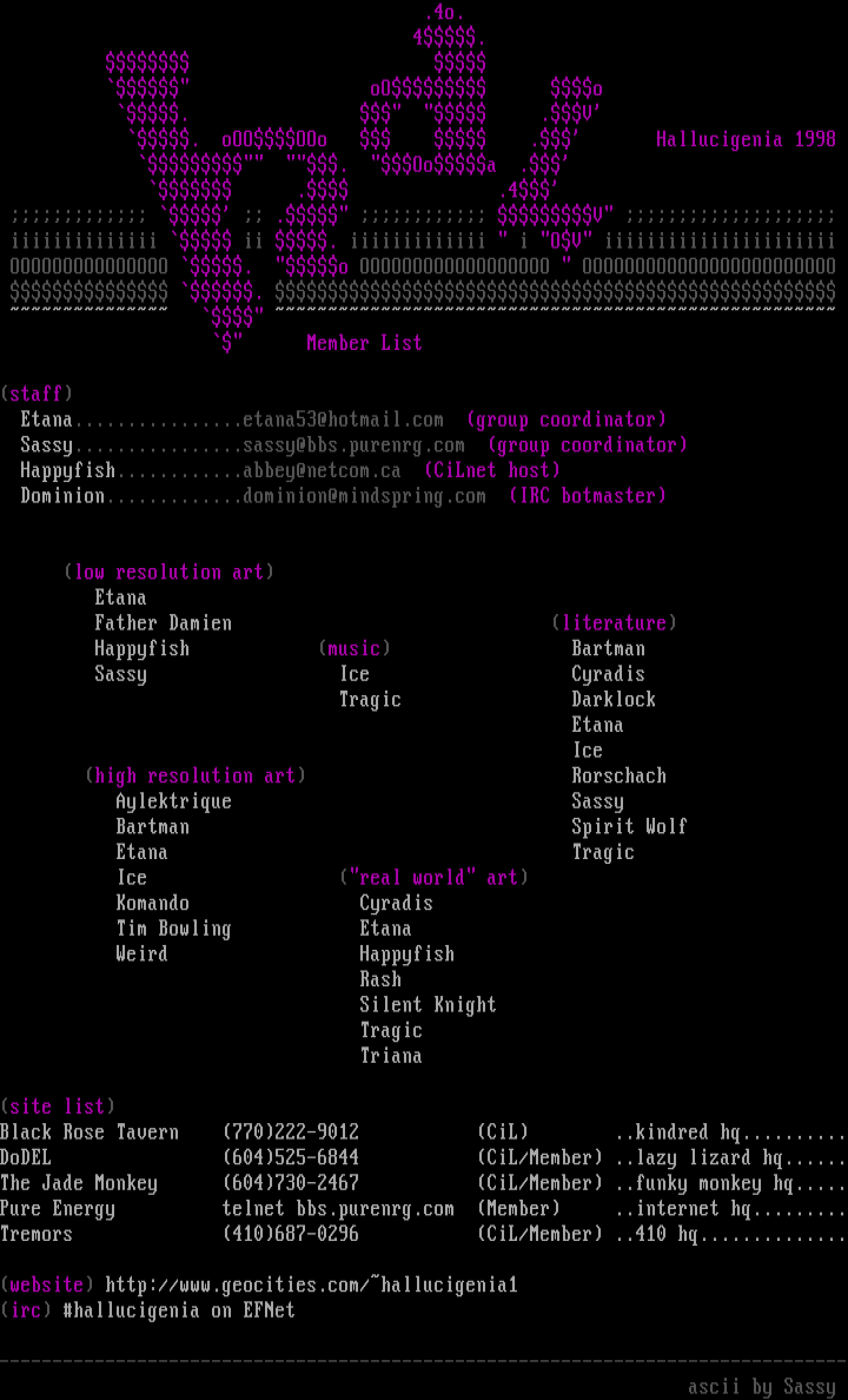 -------------------------------------------------------------------------------- ascii by Sassy
