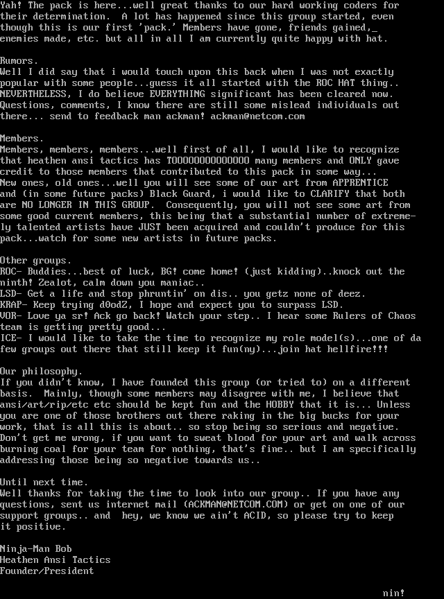 ansi/art/rip/etc etc should be kept fun and the HOBBY that it is... Unless