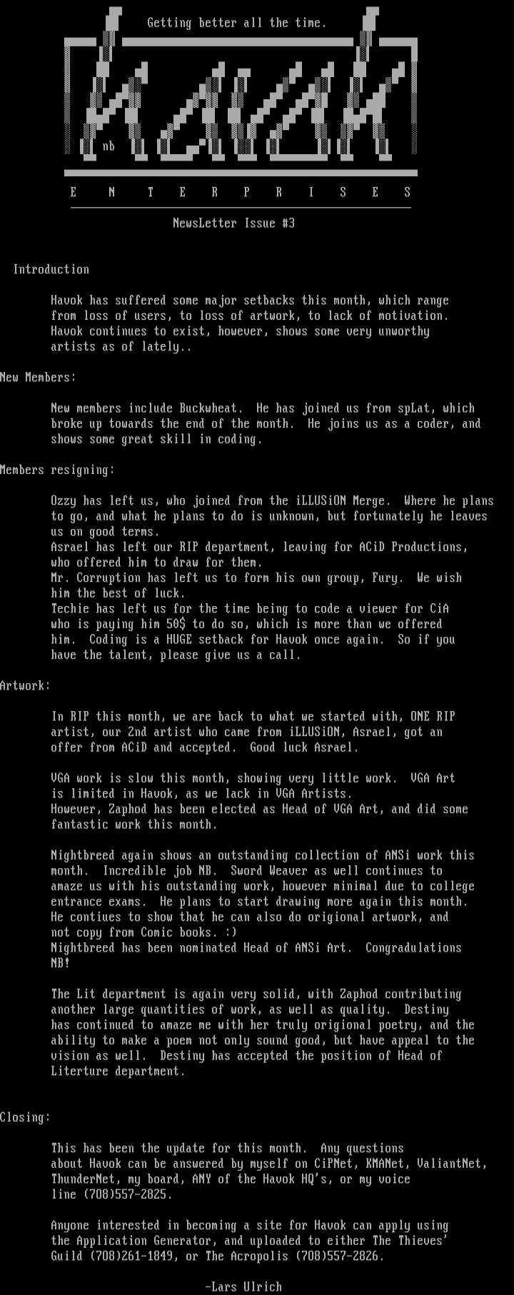 Asrael has left our RIP department, leaving for ACiD Productions,