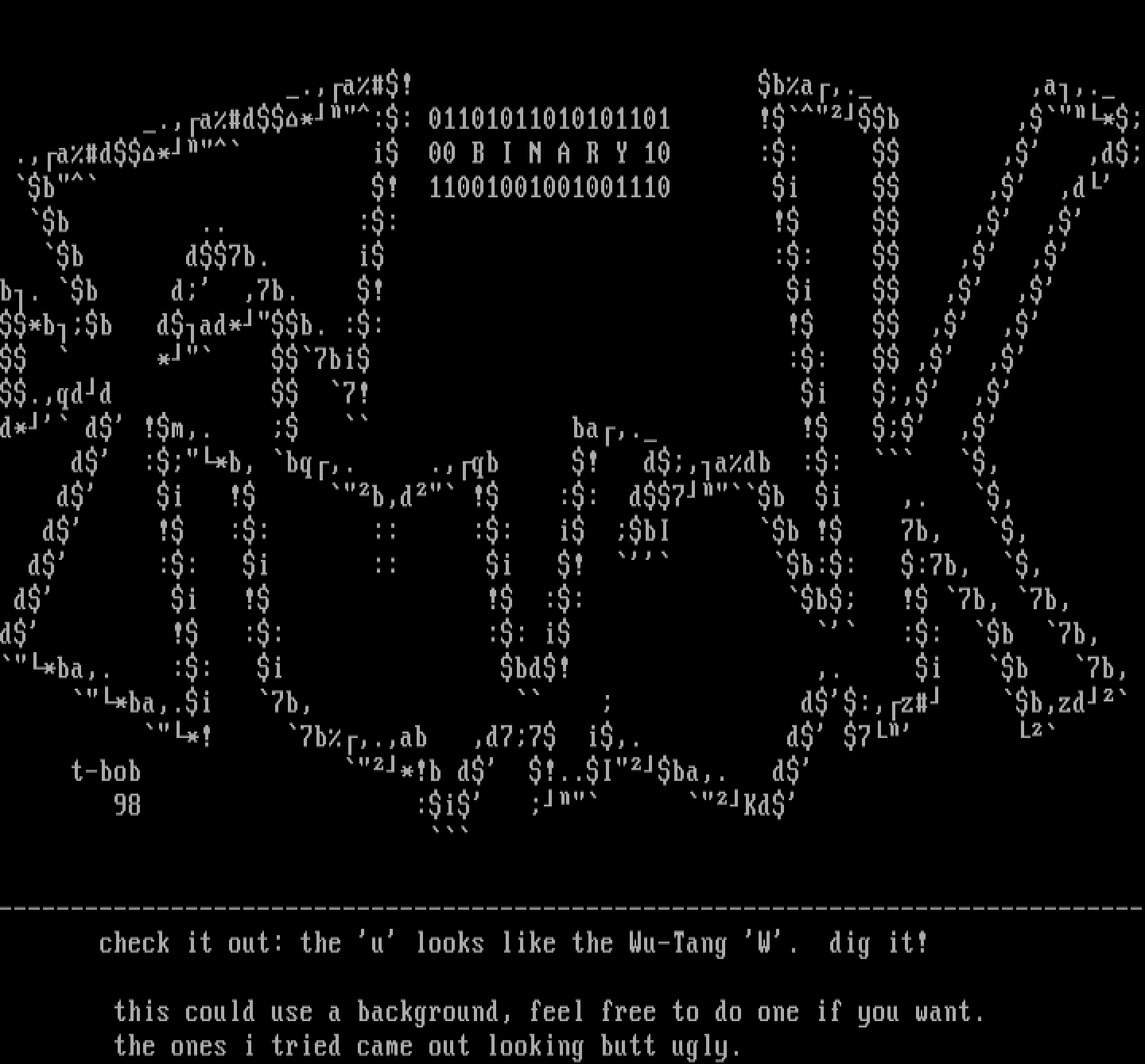 -------------------------------------------------------------------------------- check it out: the u looks like the Wu-Tang W. dig it!