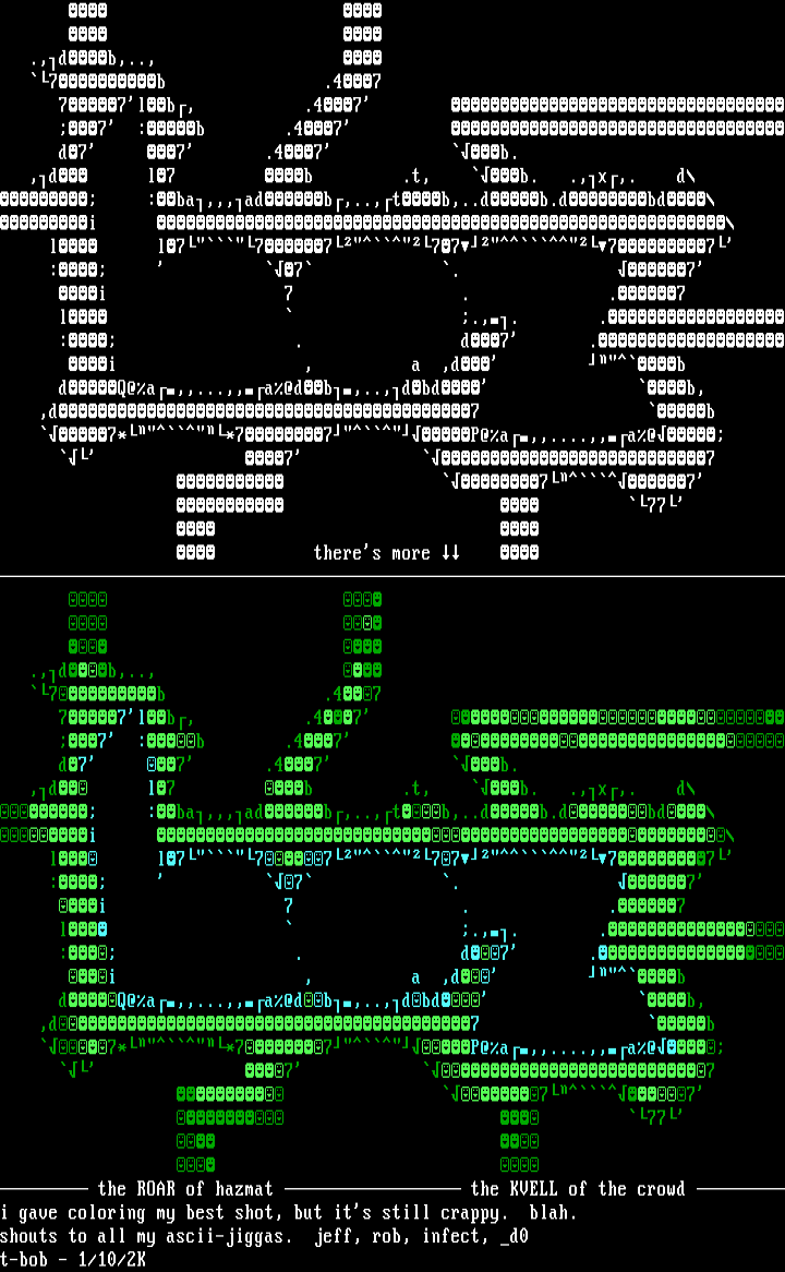 shouts to all my ascii-jiggas. jeff, rob, infect, d0