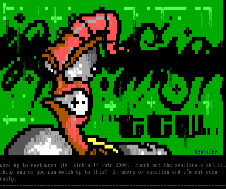word up to earthworm jim, kickin it into 2000. check out the smallscale skills.think any of you can match up to this? 3+ years on vacation and im not even