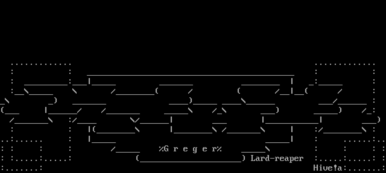 ..:...... : : ......:..: : : : / G r e g e r : : : :: :.....:.....: Lard-reaper :.....:.....: ::.......: Hive!a:.......: