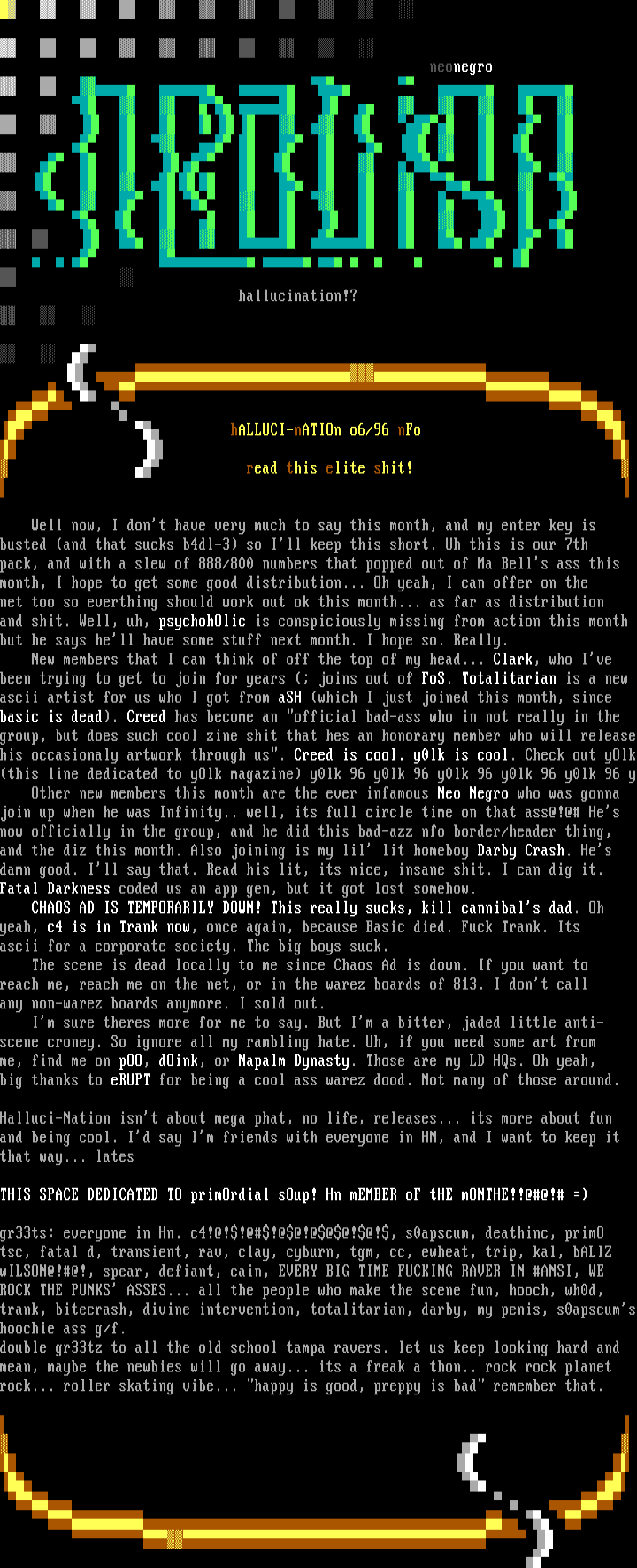 join up when he was Infinity.. well, its full circle time on that ass@!@ Hes now officially in the group, and he did this bad-azz nfo border/header thing, and the diz this month. Also joining is my lil lit homeboy Darby Crash. Hes