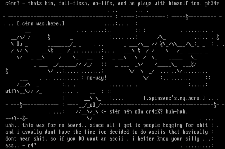 dont mean shit. so if you DO want an ascii.. i better know your silly . .: