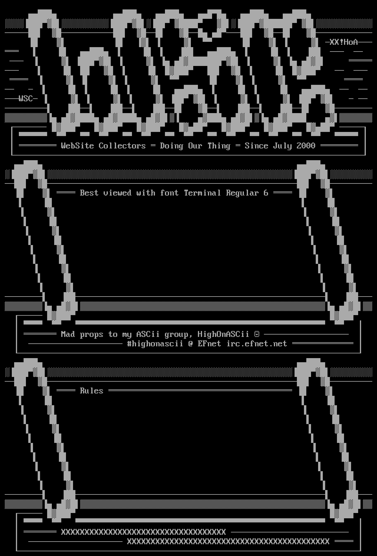 Mad props to my ASCii group, HighOnASCii