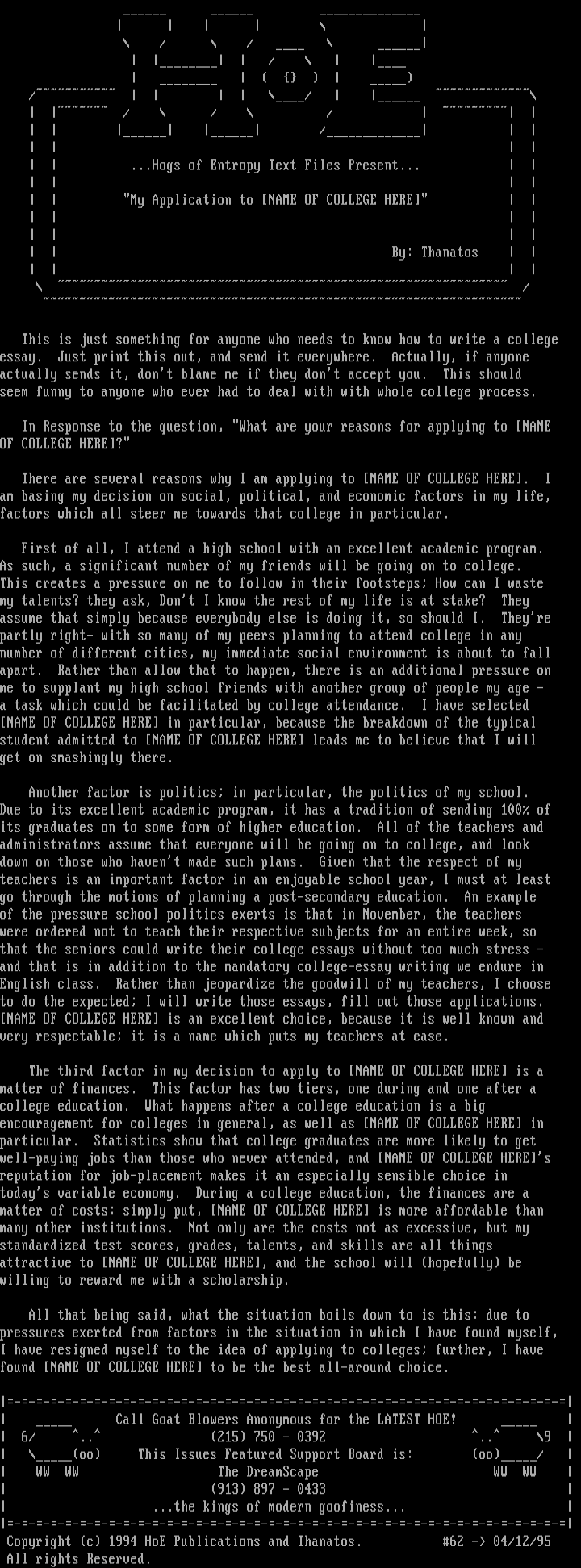 essay. Just print this out, and send it everywhere. Actually, if anyone