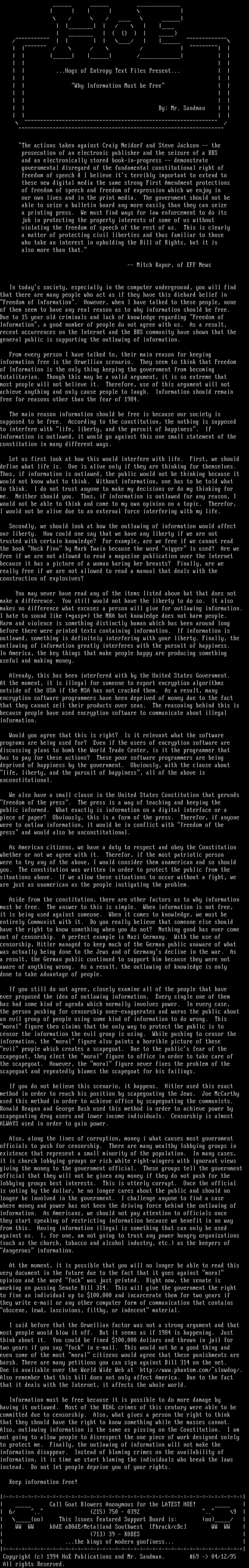 Also, outlawing information is the same as pissing on the Constitution. I am