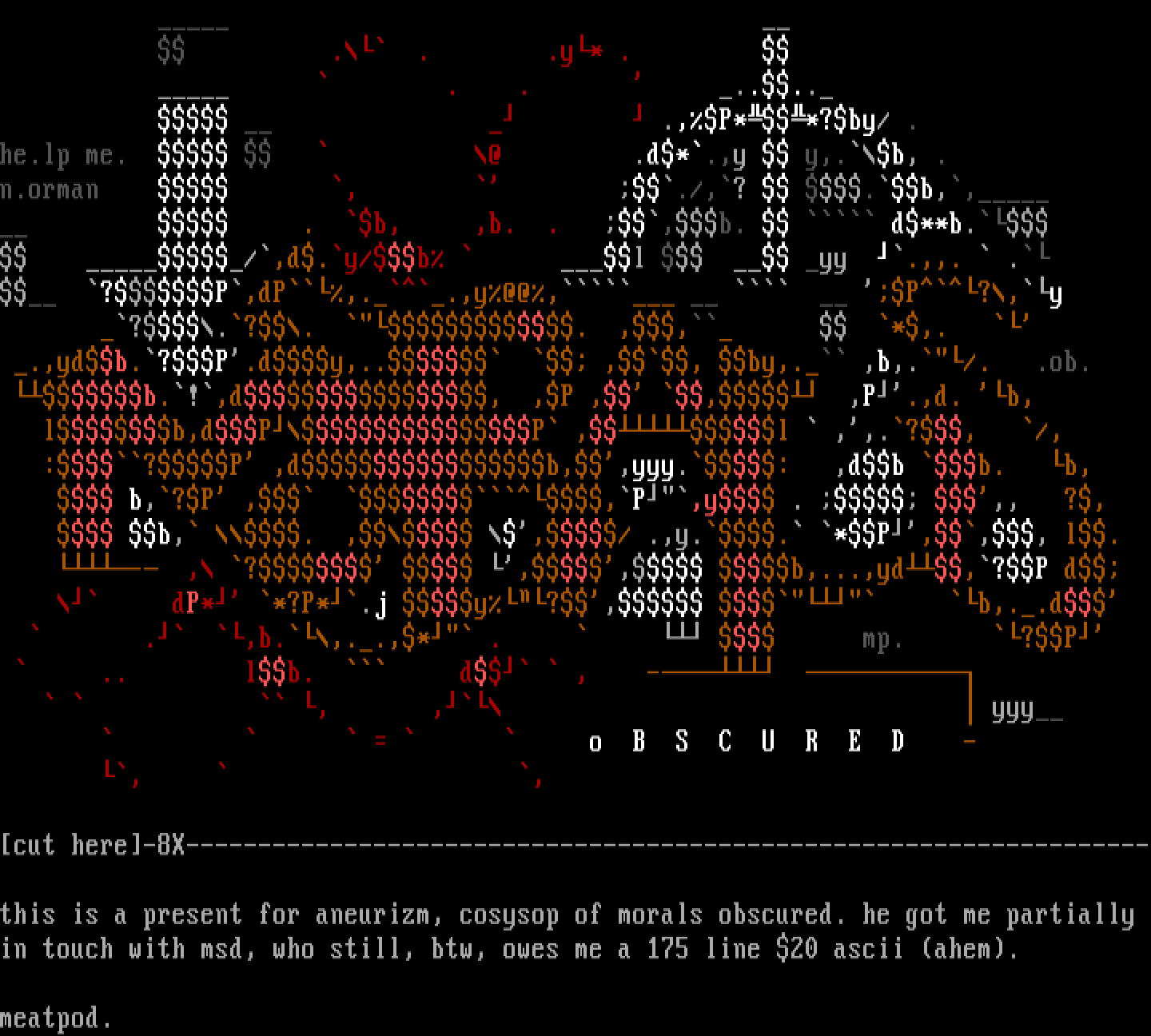 in touch with msd, who still, btw, owes me a 175 line 20 ascii ahem.