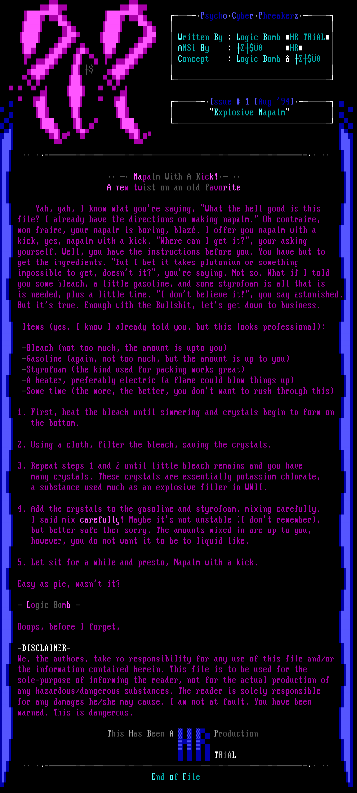 kick, yes, napalm with a kick. Where can I get it?, your asking