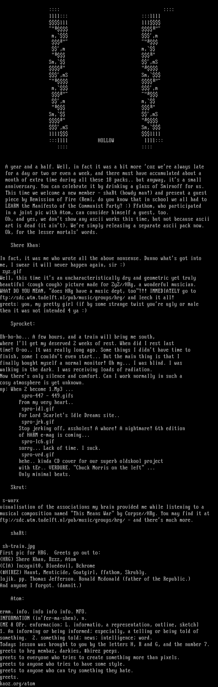 greets to hrg membaz, darkies, hirez peeps.