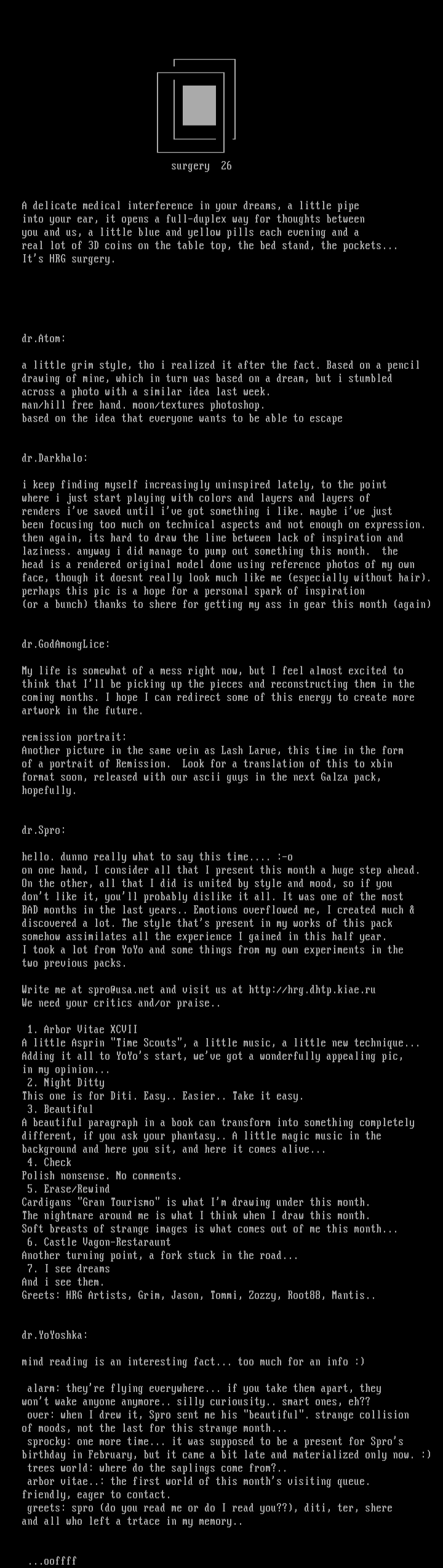 Greets: HRG Artists, Grim, Jason, Tommi, Zozzy, Root88, Mantis..