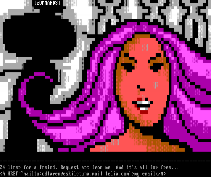 --------------------------------------------------------------------------------24 liner for a freind. Request art from me. And its all for free...