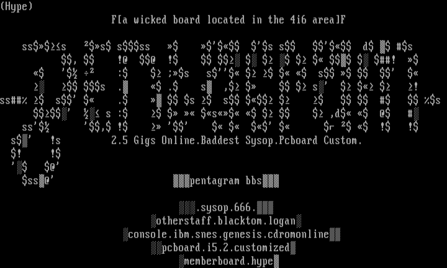 s !s 2.5 Gigs Online.Baddest Sysop.Pcboard Custom.
