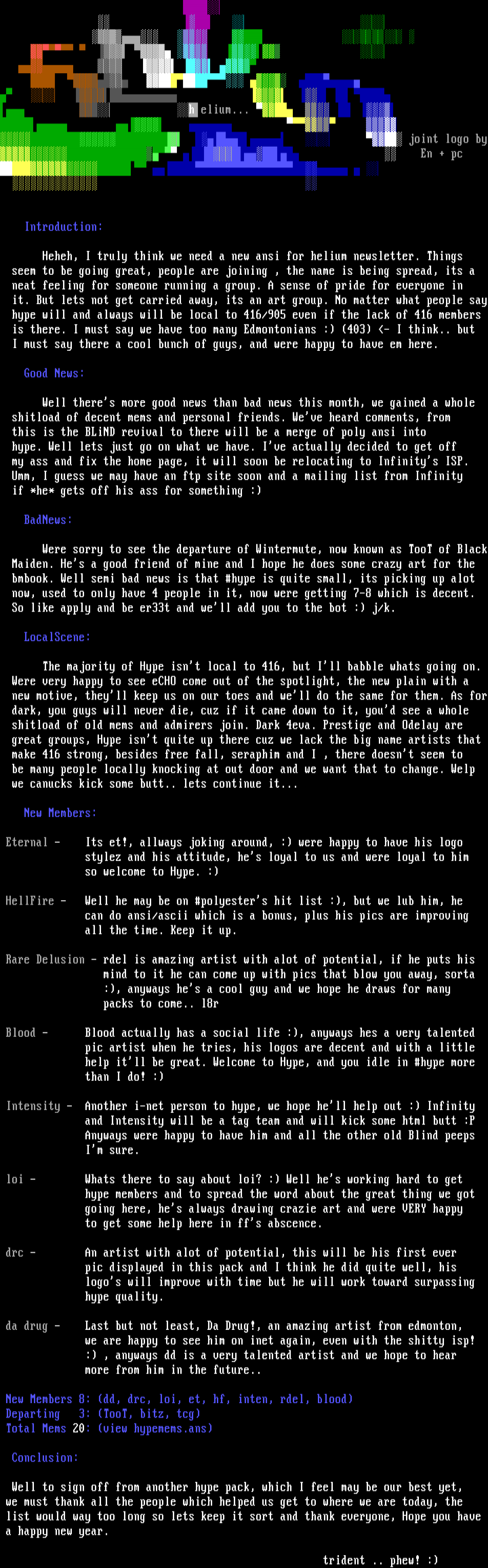 Heheh, I truly think we need a new ansi for helium newsletter. Things