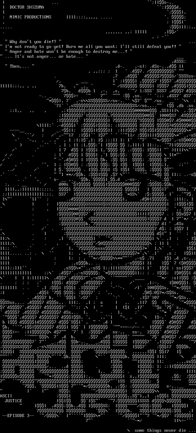 , .b, b, lll ,d l ls ll ll ..,,ss S/,.. .,d l . l l ll 7 , l,. , . l llllls *l,. l s,,l , 7 77l7lSS l 7, lS 7*/b, , s-,.. l l S /l S ASCII l l,,Sl,,l ,sl JUSTICE ll lS 7lSSSS d 7 ll ,db,,d lSS l/S ll