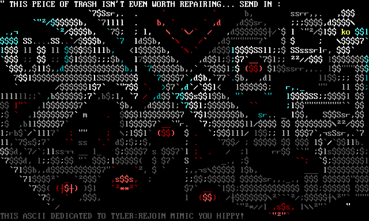 THIS ASCII DEDICATED TO TYLER:REJOIN MIMIC YOU HIPPY!