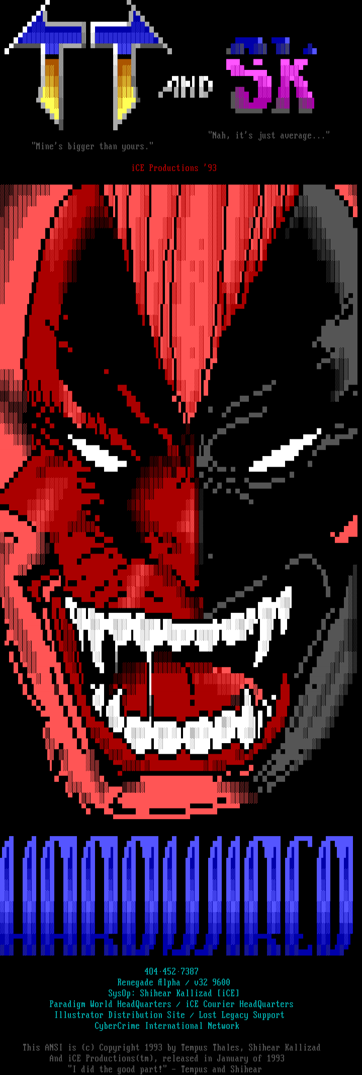 This ANSI is c Copyright 1993 by Tempus Thales, Shihear Kal