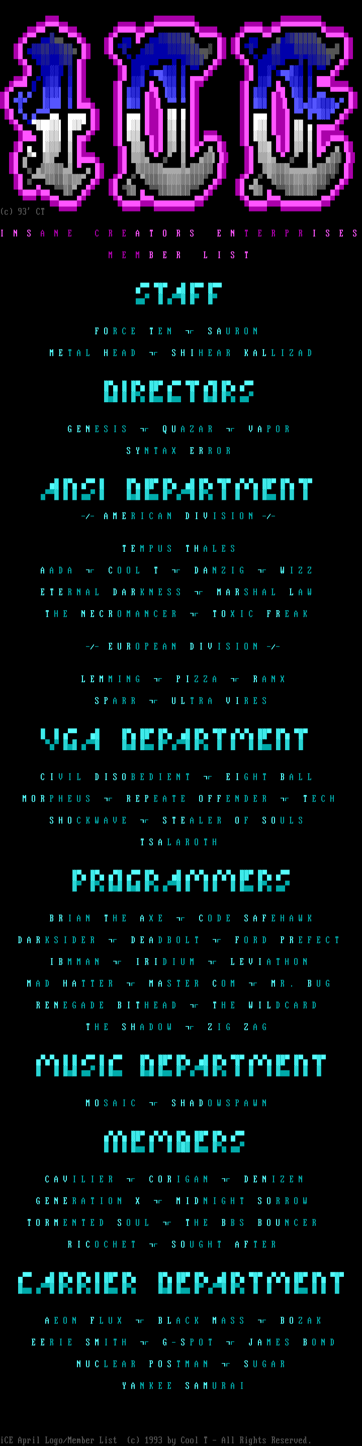 iCE April Logo/Member List c 1993 by Cool T - All Right