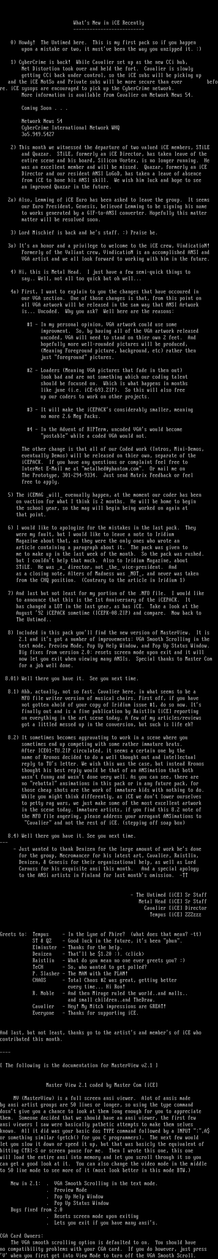 getting CCi back under control, so the iCE subs will be picking up and the iCE NotSo and Private subs will be more secure than ever before. iCE sysops are encouraged to pick up the CyberCrime network.