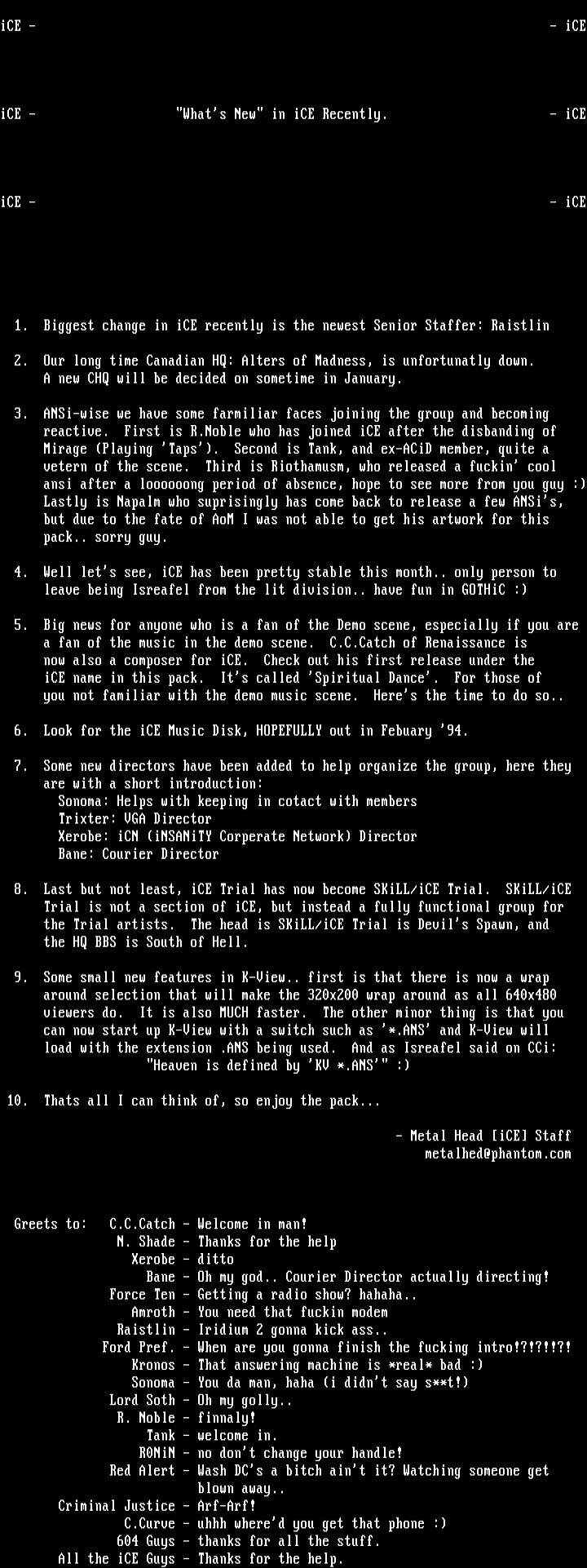 6. Look for the iCE Music Disk, HOPEFULLY out in Febuary 94.