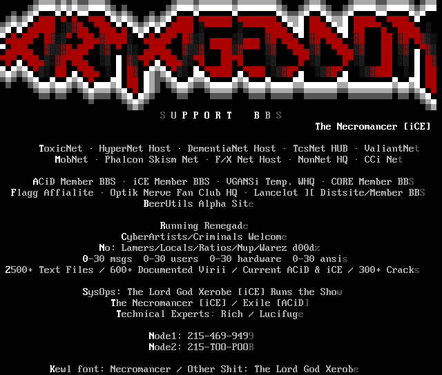 ACiD Member BBS iCE Member BBS VGANSi Temp. WHQ CORE Memb