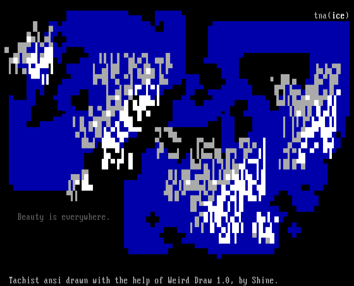 Tachist ansi drawn with the help of Weird Draw 1.0, by Shin