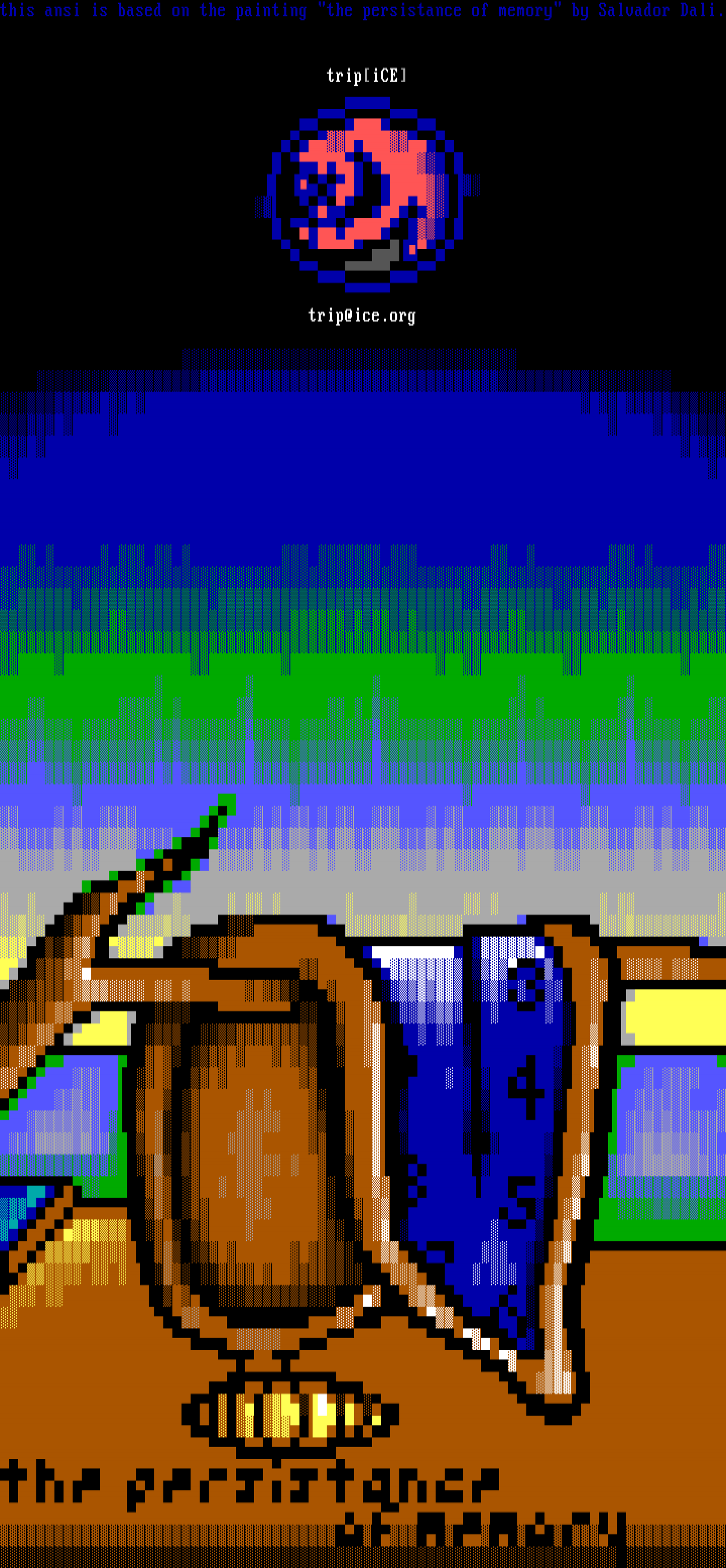 this ansi is based on the painting the persistance of memory by Salvador Dali. i didnt bother to finish it, because it sucks.