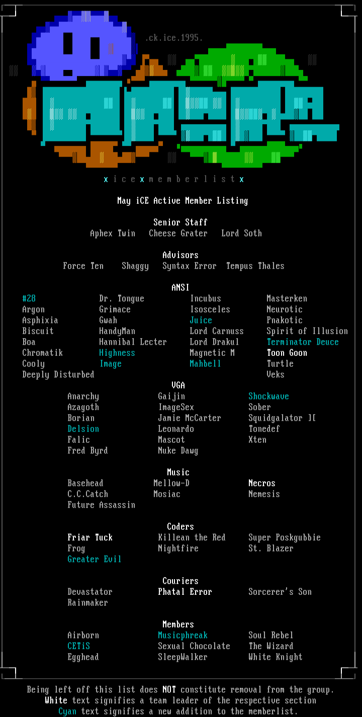 Cyan text signifies a new addition to the memberlis