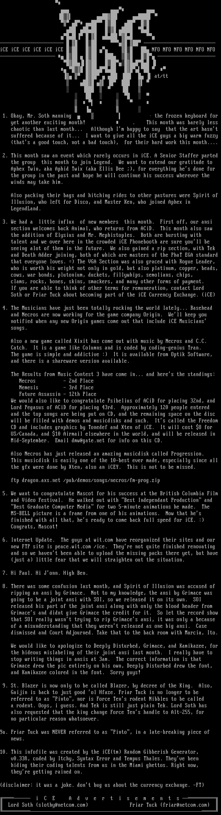 10. This infofile was created by the iCEtm Random Gibberish Generator,