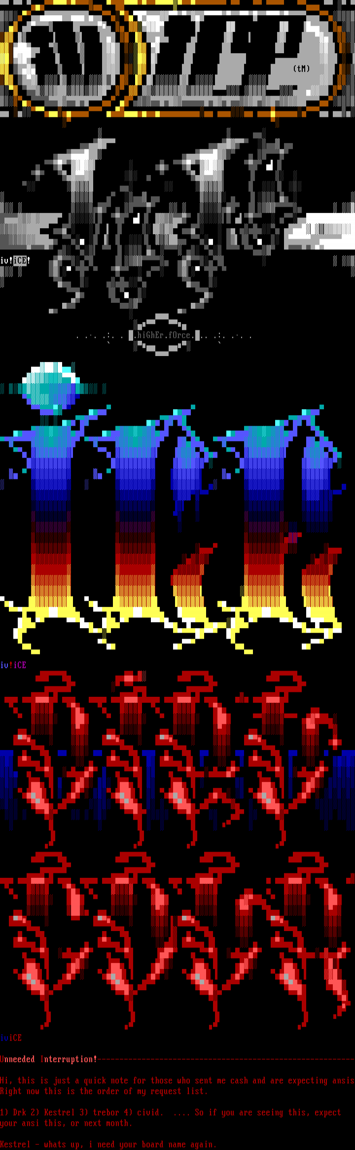 1 Drk 2 Kestrel 3 trebor 4 civid. .... So if you are seeing this, expect your ansi this, or next month.